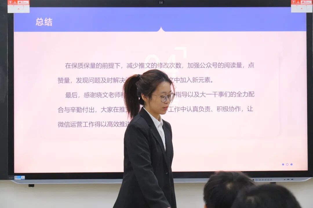 各部门部长围绕核心工作复盘总结,摄影部聚焦拍摄质量、设备管理与干事培训,正视角度把控、素材储备等问题并明确改进路径;文字部通过“老带新”等模式实现干事成长,针对沟通、培训等短板提出优化方案,计划深挖多元创作方向;微信运营部与新媒体运营部分别围绕公众号、短视频平台运营,总结传播成果,反思热点响应、内容创新等不足并规划提升举措;策划部则明确拍摄规范、工作纪律与细节标准,强调关键元素把控与新生指导。 每位部长述职结束后,主任围绕“印象最深的任务”“工作变化与提升”“内容创新方向”等核心话题展开交流,针对性了解工作推进中的难点与思路。各主任结合部长述职情况与提问交流,给出精准点评与指导,他们肯定各部门阶段性工作成效,同时针对细节优化、沟通主动性提升、内容差异化打造等核心问题提出具体要求,叮嘱成员们强化细心意识、时间管理与团队协作,为后续工作指明方向。 本次述职复盘大会的圆满召开,系统梳理了新闻中心半年度的工作脉络与成效,明确了各部门发展方向。未来,新闻中心全体成员将以此次大会为新起点,在部长与主任的引领下凝心聚力、精进专业,以更鲜活的宣传内容、更高效的协作模式,持续擦亮国际商学院宣传名片,为新闻中心注入源源不断的新动能。