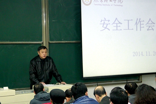 11月20日上午,安全工作会在综合教学楼101室召开。全体校领导,各二级学院院长、副院长、办公室主任、教研室主任、各实验室中心主任、辅导员,各职能部处副科级以上人员参加了会议。大会由副校长何双庆主持。