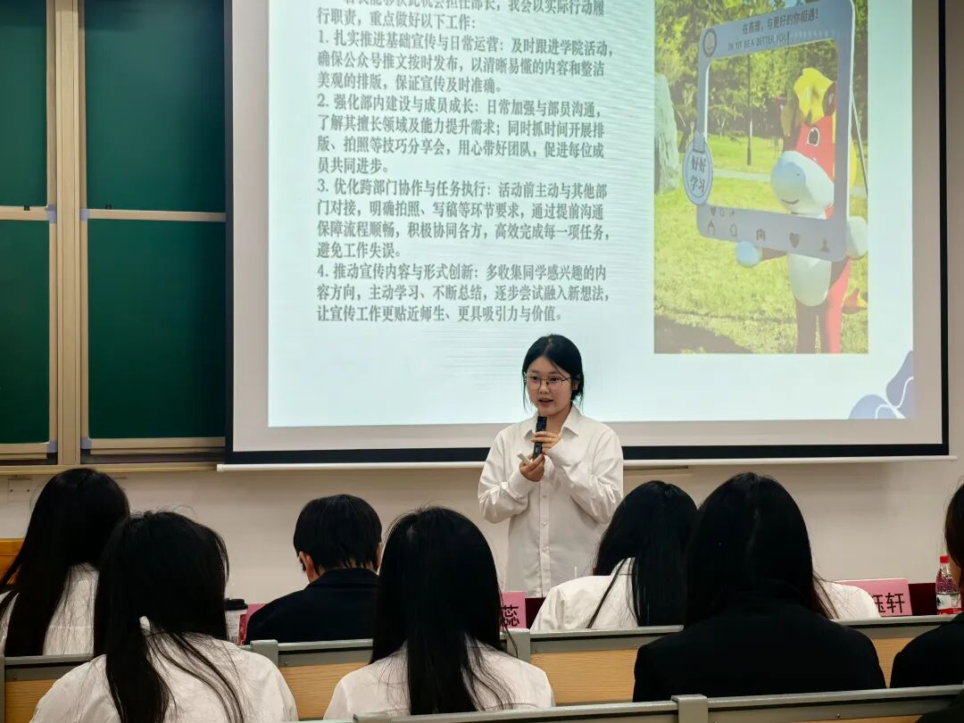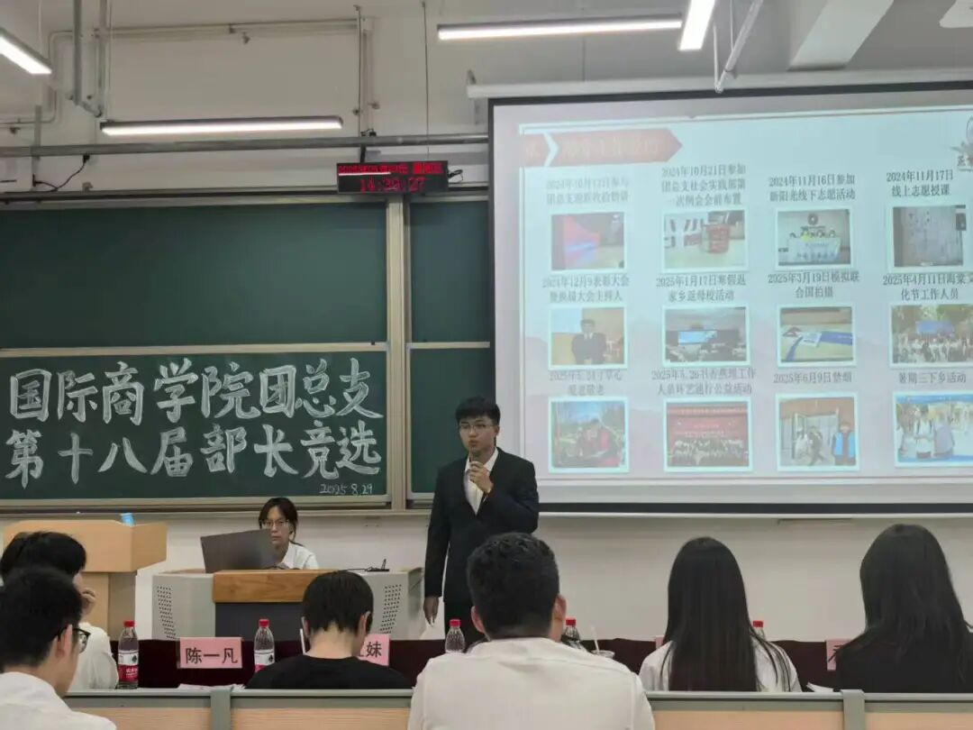 为进一步加强团总支建设,考察学生干部的任职能力、选拔出一批责任心强、能力突出的优秀骨干为团总支激发团队活力与创造力,团总支于8月27日至28日在k2-114成功举办了第十八届团总支部长竞选活动。 (正在部长竞选) 在竞选开始,现任部长进行工作汇报,阐述这一年参与部门工作期间所作出的努力与成果;从参与重要活动的策划执行,在关键环节中发挥创意与协调作用以助力活动成效提升;到为优化部门运作,主动探索并推行更高效的工作方法,推动团队协作与任务落实更加顺畅;再到立足部门长远发展,积极整合资源、沉淀经验,为部门工作的持续开展提供有力支撑,实现部门的发展、个人的成长。 (正在部长竞选) 本次竞选活动,从前期报名筛选到现场环节衔接均有明确指引,流程规范有序。各部门竞选者依次上台,结合个人简介、工作经历、对竞选部门现存问题与改进方向的认知,以及分阶段推进的未来工作规划进行汇报,从团队管理、活动策划、成员成员培养等多个维度展现个人能力与担当。 (正在部长竞选) 汇报结束后,指导老师和团总支学生书记处成员结合部门过往工作中的典型案例,围绕活动策划落地、跨部门协作、成员矛盾调解等实际问题向与解决问题的思路,竞选者们沉着应答、条理清晰,互动氛围热烈,充分展现了新一届学生干部们的专业素养与积极向上的精神风貌。在整个过程中,工作人员分工明确,记录与现场引导,全程严谨维持秩序,确保活动每个环节都能按照既定流程高效顺利推进。 (正在部长竞选) 此次部门部长竞选活动的圆满结束,不仅为有能力、有责任的成员提供了展示自我的平台,也为各部门注入了新鲜血液与新的活力。相信在新任部长的带领下,各部门将凝聚更强合力,推动团总支各项工作迈向新的台阶。
