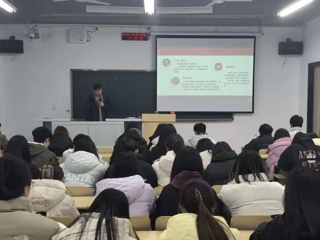 为夯实基层学生骨干队伍建设,提升2025级班长的岗位胜任力,国际商学院“琢玉工程”学生班长专项赋能培训近日成功举办。本次培训由学院李佳乐老师主讲,聚焦班级管理、学业帮扶与沟通技巧三大核心场景,为2025级各班班长带来了一场兼具专业深度与实操价值的能力提升课。 (老师在讲解) 培训开篇,李佳乐老师从“班长的角色重构”切入,提出班长不仅是班级事务的“执行者”,更是同学与学院间的“连心桥”、学风建设的“排头兵”。他结合学院最新的管理细则,对考勤、评优评先等高频工作进行了精细化拆解,帮助学员建立政策红线意识,确保班级事务规范高效推进。 (同学们在认真聆听) 本次培训首要聚焦筑牢管理根基,课程将深度解析学院班级管理细则,围绕考勤制度执行规范、奖学金评选全流程开展专项教学,帮助班长精准掌握政策要点,确保班级奖学金评定、考勤统计等日常工作规范高效、零差错,为后续学业帮扶、沟通协调、活动组织等工作夯实基础。 (老师在讲解) 参训班长们纷纷表示,本次培训既有政策解读的专业深度,又有实操方法的落地温度,不仅明晰了岗位价值,更收获了可直接运用的管理工具。大家将把所学转化为行动,以更扎实的能力和更主动的担当投入班级工作,为学院学生工作高质量发展贡献力量。